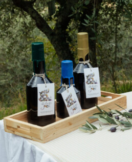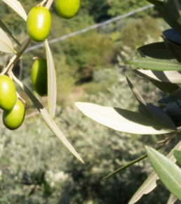 - Olio extravergine d’oliva di nostra produzione, disponibile anche in ceramiche dipinte a mano